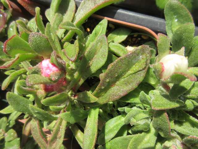 デイジーとは関係ないリビングストンデージー(ツルナ科と覚えていたがいまはハマミズナ科と言うらしい)、つぼみが見えてきました。
