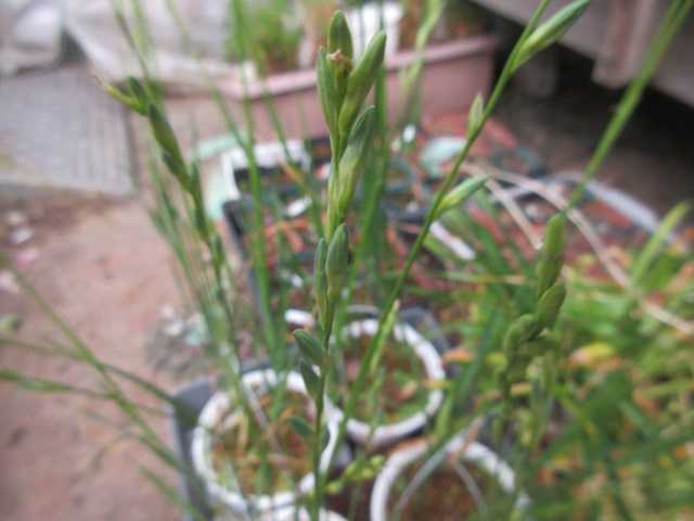 イキシア・ヴィリディフローラの花穂がわさわさと伸びてきました。
