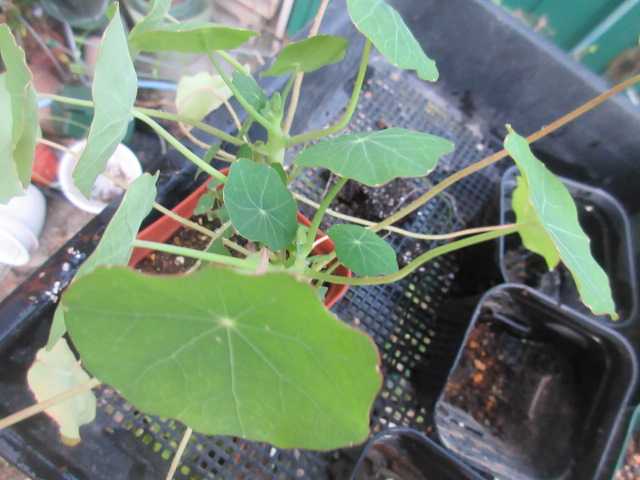 二期作のナスターチウム(夏に枯れた株にできたタネを蒔きました)