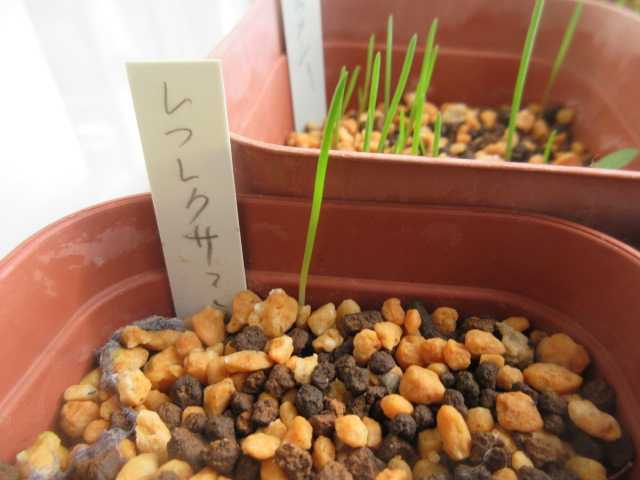 いただきもののラケナリア・レフレクサ、球根もタネも発芽しました。
