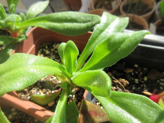 こちらはリビングストンデイジー、光を浴びてキラキラ光る葉も美しい