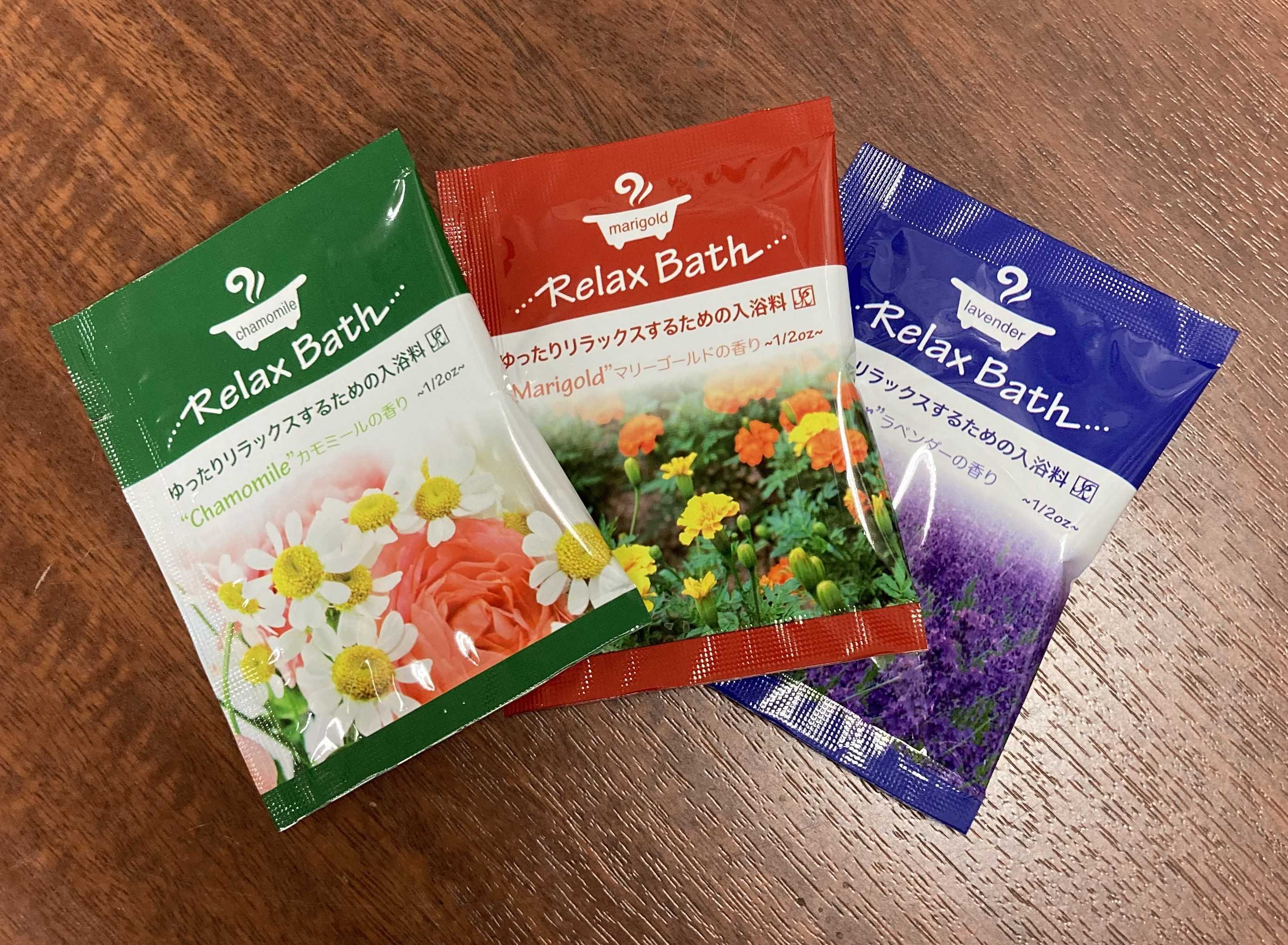 みなさまこんにちは!いつもリッチモンドホテル東京武蔵野のブログをご覧いただき、誠にありがとうございます。 本日はご宿泊者様にお配りしている入浴剤の紹介をいたします。カモミール、マリーゴールド、ラベンダーと3種類ご用意しております。私のおすすめはカモミールです。カモミールの語源ですが、大地のリンゴという意味からきているようです。甘い匂いが後から追いかけてくる感じの匂いで、浴槽いっぱいにお湯を溜めていただき入浴剤2袋入れていただくとより香りが楽しめるかと思います。ぜひお泊りの際はお試しくださいませ。フロントにてご用意しておりますので、お気軽にお声がけください。みなさまのお越しをお待ちしております。