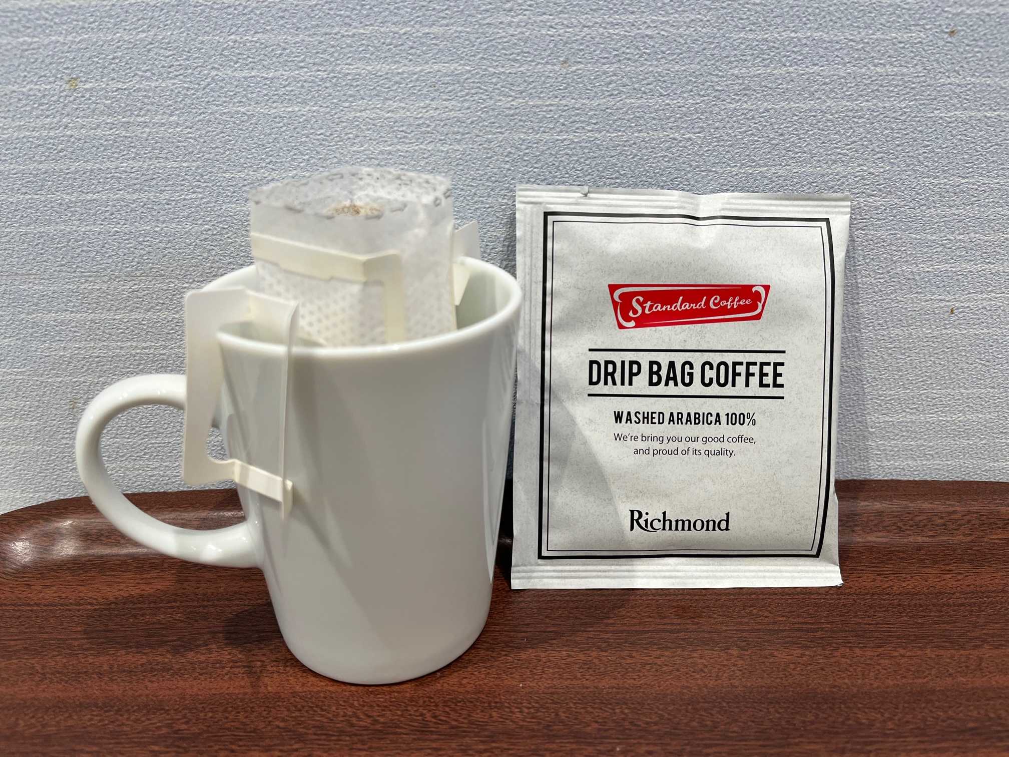 忙しい一日が終わった夜に、朝の眠い目を起こす為に、一杯のコーヒーが気分を変えてくれます。当ホテルでは、そんなコーヒー派の方に人気のドリップバッグを、お部屋にご用意しております。こちらは、私どもロイヤルグループのハウスブランド「スタンダード・コーヒー」のものです。厳選された農園で育った豆を、丁寧に焙煎した自慢のコーヒーです。スタンダード・コーヒーは、青山や虎ノ門にも店舗を構えております。また、当館2階のレストラン「シズラー」でも、こちらのコーヒーをお出ししております。お近くにお越しの際、ホテルにお泊まりの際は、是非お試しくださいませ。