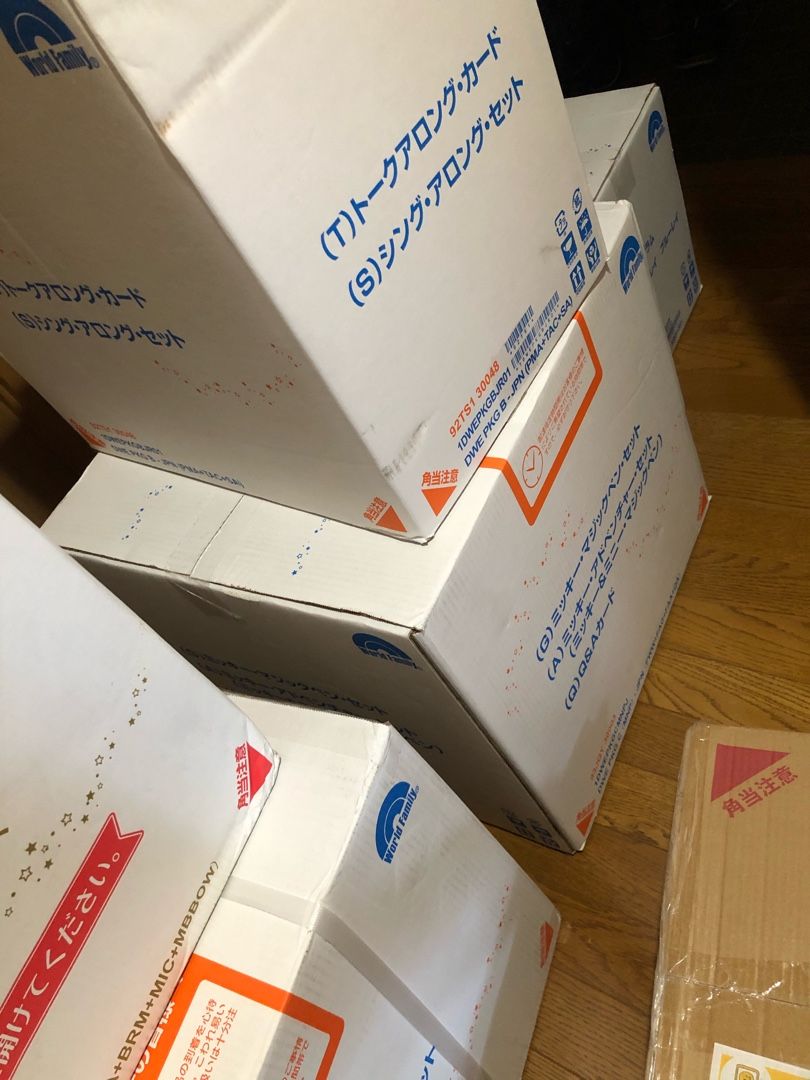じ、じつは、先週末にディズニーワールドイングリッシュ(DWE)を無料体験し、そのまま購入しました!マタニティの時から、赤ちゃんグッズを購入するたびにチラシが入っていたり、商業施設でコーナーがあったりしません?出産後も沢山見る機会増えますよ!そんな広告を見ては、あぁ、この時代英語できるようにならなきゃ〜。なんて思いながらゴミ箱に捨ててたり笑笑思ってても行動に移せないですよね…今回はディズニーワールドイングリッシュについて書きたいと思います。結論から申し上げます。今日から始めてるので、効果はないです。ただどんな感じか?をここに記したいと思います。←長くなります。ご了承ください。いろんな疑問があると思います。出来る限り応えたいと思いますので、気軽にコメントください。1.なぜ無料体験を申し込んだか?2.金額は?3.いつから始めるのか?4.どんな内容か?5.会員特典6.どんなものが届くのか(写真あり)7.レッスンの流れ8.購入の決め手9.どれぐらいの期間?卒業レベルは?10.メリットデメリット1.まず、なぜ無料体験を申し込んだのか?よく、1名様に当たる!というダイレクトメール届きます。応募している方も沢山いらっしゃるかと。私もその一人…当たるわけない!笑笑 まぁ資料請求してみようかな?という簡単な気持ちで資料請求をして、サンプルDVDやCDを生後4〜5ヶ月ごろからほぼ毎日2回ほど流していました。CDは車の中で、DVDは家の中で…。すると、生後6〜7ヶ月ごろからDVDに食いつくように!追いママが激しかったので、DVDを流している間、夕飯作ったり…としていました。食いつき具合を見て、やってみようかなぁというのがきっかけです。1歳の時に無料体験しました。2.金額はどれぐらい?結論から申し上げます。高いです!すんごい高い!あ、皆さんそれぞれ金銭感覚が違いますよね。1番高いプランで100万円超えます。1番安いプランで5万円とか20万円くらいです。ただ本気で英語を勉強するならば最低でも上から2番目の90万超のプランをしないと難しいみたいです。そしてそのセットプランとは別に会員になって月額いくらか払います。習い事を始める月謝のようなものです。年齢によって月額変わります。3.いつから始めるといいのか?私のところに来てくれた営業←アドバイザーさん曰く、早ければ早いほど…みたいです。マタニティの時からできるみたいですね。いわば胎教のようなもの、、、0〜2歳だと一緒に遊んであげて、そのあと一人で遊んで身につく…らしいんですが、3歳以降だと一緒にちょっと頑張ってもらわないと難しいみたいです。4.どんな内容?私は1番高いプランを購入しました。Blu-ray、CD、本、単語カード、おもちゃ、ぬいぐるみ沢山あります。まぁまぁ場所をとります…。正直使いこなせるか不安になります。アドバイザーさんは子どもが勝手に遊ぶので親に負担はないと言いますが、ありますよ!←小声1歳児は本を破るし、色んなものを口に加えるし、本棚付きなんですが、そこから沢山本やCDなど取り出して部屋の中グジャグジャ。初日に本破られました。会員だと無償交換してくれます。ただ!破れた本を送る時の送料は自己負担です!5.会員になると?月謝を支払います。そうすると、本やおもちゃが壊れたら無償交換してくれます。色んなイベントにも参加できます。レベルは色分けされて、修了試験を受けて合格したら次の色へ、、、という流れです。なし→ライトブルー→ブルー→グリーン→ライム→イエロー→卒業という流れです。卒業式はディズニーミラコスタで行われるらしいです。イベントに行きたくない、コロナが怖いけどアウトプットしなきゃいけない…という方もいると思います。電話で先生と喋ったり、Wi-Fi環境があれば、ライブでテレビに映りそこで参加できたりもします。6.どんな感じか?←写真あり。ヤマト便で届きました。段ボール6箱分…うわっ…やっぱ親に負担かかるじゃん…と思いながらも、しぶしぶと本棚をママ一人でがんばりました。パパは仕事中👨小さな部品はあるものの、ドライバーなしで組み立てられます。かっちゃんに邪魔されて20分くらいかかりました。これ、組み立てのはいいけど、移動する時、重い…。本入れたら、もう大変!ホームセンターとかで別途キャスターを買ってもよかったかも…。本を入れる前に置きたい場所へ移動。本を入れたら、中々レイアウト変更難しくなるかと。次教材を入れます!できたー!腰が痛いっ。疲れました。こんな感じです。昨日完成させましたが、できたー!と思ったら、かっちゃんが本棚から沢山出しまくります。もう面倒なので放置!後で片付けよう…。7.レッスンの流れアドバイザーさんが言った通りに、朝1番にCDを流します。子どもがまだ寝ている時から流しておくみたいです。もちろん、大人は朝の情報番組見ててOK。雑音かもしれませんが、子供のため。CD午前中3回流します。午後CDの内容をBlu-rayで流します。耳で聞いて、何を言っているか目で確認。そんな感じで