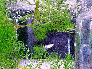 先日、日記に書いた「室内ミニビオ鉢」ですが、昨日少々いじってみました。ガジュマルが植えてあるコップの土を「水草一番サンド」にしてみました。水草用の土で観葉植物が育つのか、ちょっとやってみようかと思って。。。根腐れしたらイヤなので水は少なめにしてみた。底土は普通のソイルの余り物です。いじって水が濁っちゃったので一晩置いた。そして今日覗いてみたら、もう稚魚が勝手に住んでるよ~。あらまあ。なんで?おそらく、浮き草の根に卵がついてたんでしょうね。昨日さんざんいじっちゃって、気の毒だったかも。本当は子メダカ用に作成したんだけど稚魚を移動させるのも 面倒 可哀想なのでこのまま稚魚さんに居てもらいましょう。この後、稚魚がコップに入り込まないように水量を減らしました。