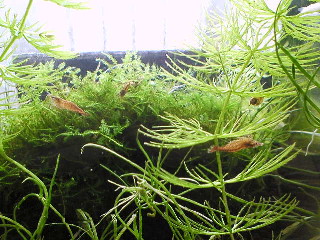 ヒメヌマエビさんです。ボトル1で幸せにに暮らしております。購入時は砂色の身体にベージュのラインがくっきり入ってたのに今じゃ赤褐色の身体に黒っぽい筋があるだけ。こんな感じです。変わるもんですね~。エビさんの体色変化って何が影響してるんですかね。ヒメヌマエビはヤマトと同属で汽水域でしか繁殖しないみたい。ウチで増やすのは無理のようですね。1年位しか生きられないみたいだけど、その時まで、優雅に(コケ取りして)暮らしてくれ~。