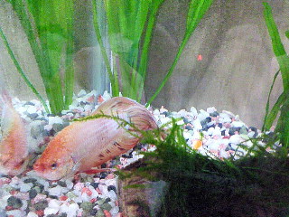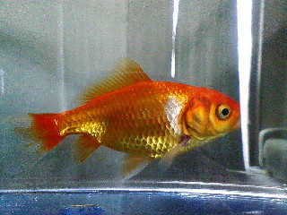 トンちゃんと一緒にいた頃は、いじめっこだったテンちゃんですが1匹になってからはボーッとしてる事が多くなったみたい。テンちゃんの水槽は玄関にあるので、いつも一人な感じです。そーっと見に行くとやっぱりボーッとしてる。ドアの開閉音で臆病になっちゃう魚もいるようだけどテンちゃんは違います。来客があったり、誰かが帰宅したりすると物凄い歓迎ぶりを見せてくれます。実は1匹になって淋しいんじゃないか?エサが欲しいだけじゃないような。。。水槽に指を置くとすぐに飛んできます。う~む、やっぱりエサだと思ってますかね。水の中に指を入れるとチュパチュパされちゃうし。飼い主のセンチな思いをよそに今日もたっぷりゴハンを食べるテンちゃんでした。