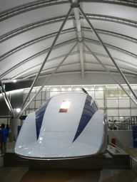 万博で気になっていたJRのリニアモーターカーの展示。時間も遅くなり空いていそうだったので行ってみました。おー、かっこいいです。800系でしたっけ、現行のJR東海の新幹線にちょっと似ているかな。空気抵抗をなくすような流線型の設計は横からみるといい感じです。そして、車両の中にもはいれるので入ってみました。今回展示用に右側の座席は取り払って、通路にされていましたが、新幹線より横幅が狭いみたいで、多分横に4列しか並べそうにないくらいの幅です。しかし、中をみると普通の新幹線みたいだぞ。なんだかちょっとがっかり。リニアってすごいハイテクな感じのを想像してた私が悪いのでしょうね(笑)ちなみに、万博会場に行く際に交通機関として使用するリニモもリニアモーターカーです。乗ってみましたが、車輪がないからなのかとても静かです。でも、SFチックな(笑)動きを想像していた私は、あまりにも普通の電車なのでちょっとがっかりしちゃいました。(←おバカ?)そうそう、リニモは駅ごとにマークが決まっていて、それがなかなかいい感じです。特に万博の駅はポラロイドSX-70の箱についてるマークみたいで私的にはかなりお気に入りです♪うちの近所の電車も駅ごとにマークがあったら楽しいのになぁ~。