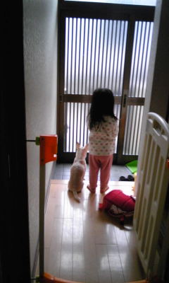 ゴミ捨てに行っているじ~じを待っているんです(笑)