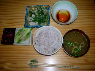 おいらにはとっても大切にしているものがございます。それはヌカ床!去年の6月にこ、ちらのヌカ床を購入して以来、毎日せっせとヌカ床をまぜまぜしております。おかげでいつも美味しいヌカ付けを食べることができます。ここだけの話、このぬか床、滋賀までついてきたんです。笑コトさんの入院生活の付き添いも、ヌカ床チャンのおかげで乗り切れたような気がします。この時期美味しいのがやっぱりきゅうり。とうちゃんちは農家なので、きゅうりはとり放題!新鮮なきゅうりのぬか漬けは最高ですよ~。私は3回くらい漬けたら、新しいヌカと塩を足すようにしています。我が家の朝ごはんはこんな感じです。*とうちゃんのばあちゃんはニラを出荷しているので、この時期にしか取れない「ニラの芽」を分けてもらうことができます。今日は豚肉と炒めました。味つけは少量の塩のみ!*お義母さんには玉子やさんのお友達がいるので、時々美味しい玉子のおすそ分けを頂きます。新鮮な玉子は、やっぱり玉子かけご飯で食べるのが一番です!*うわさのきゅうりのぬか漬けちゃんです。ゴマをかけて食べるのもこれまた美味です。*やずやの十六雑穀いりのご飯です。おいら、はまっています。米はもちろん、とうちゃんのおうちで採れたものです。これがまたうまいんだ~我が家は炊飯器を使わず、土鍋でご飯を炊きます。おこげもできて、最高ですよ!☆コトさん情報☆昨日、装具の仮あわせで無事にギブスカットをしてきました。来週の金曜日から、本格的に装具にはいれます!過ぎてしまえばあっという間のギブス生活でした。あと一週間、コトさんと一緒にギブス生活を楽しもうと思います♪