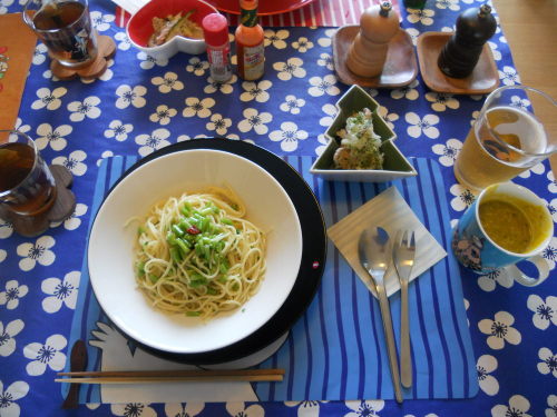 昨日は、おいらの大好きなママ友Yさんが遊びにきてくれました二人でゆっくりまったりおしゃべりするのは、久しぶり、、お昼ご飯は、うちにあるもので、簡単パスタランチメインは、、いつも行く玉子やさんで、おすそわけしてもらったニラの芽を、たっぷりいれたペペロンチーノ美味しそうな国産の唐辛子とにんにくが手に入ったので、たーーっぷり投入!Yさん、ちびちゃんたちに「ママ、くさーい」っていわれちゃったかな、、あとは、★ゆでた豚肉を塩こうじでモミモミした上に、玉ねぎの甘酢漬けをのせたもの★毎度おなじみカボチャスープ(かぼちゃ、牛乳、塩 のみのシンプルなものだけど、女性は皆大好き)キンキンに冷やしたオールフリーを、キンキンに冷やしたグラスに注いで、それっ、かんぱ~い!!Yさんとは、根本的な部分がすごく似ていて、価値観が一緒な気がする。だから、素直にいろーんなことを相談できるし、話し合えるし、共感できる。ほんとに彼女の存在はありがたい、、出会わせてくれたりこさんに感謝しちゃうっ大人になってからも素敵な出会いがあることに、日々感謝Yさん、またきてね笑って泣いて、いろいろ話すべっ**よかったらどちらか一つ、ポチッとお願いします**にほんブログ村にほんブログ村