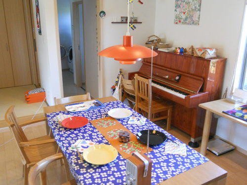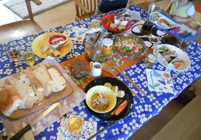 昨日のランチ会、とっても楽しかったです幼稚園のお迎えの時間ぎりぎりまで、あーだこーだ、色々おしゃべりできました女子のおしゃべりって、ほんっと尽きないですよね~~笑野菜中心の簡単料理ばかりでしたが、ママさん3人&ちびちゃん一人、みーんな喜んで完食してくれました★ハルユタカブレンドのレーズン&ナッツ入り焼き立てパン(byホームベーカリー・・笑)★自家製ピクルス★よつ葉生協さんの豚肉のしゃぶしゃぶ&玉ねぎ&生姜&きゅうりを塩こうじとすりごまで和えたもの★玉子焼き★さつまいもの塩ゆでレモンがけサラダはよーさんが作ってきてくれましたっサラダはもちろんのこと、なによりなにより、よーさんお手製の「人参ドレッシング」が本当に美味しくて・・あまりの美味しさに、「うっまーい!!」と雄叫びあげてしまいましたよーさん、あとでもう一回レシピ教えてねあき様は地元の有名なケーキやさんで、それはそれは美しく珍しいメロン入りロールケーキを買ってきてくれました早く食べたくて、写真を撮るのを忘れてしまいました、、すんません生地も綺麗なメロン色で、初めてお目にかかるロールケーキでしたあき様、いつも気を使っていただき、ありがとうねんけい様は、とても高そうな、老舗のおせんべいをもってきてくれましたこれまた写真撮り忘れ・・すんませんけい様もよつ葉生協仲間で、いつも体に優しそうな素敵お菓子を持ってきてくれますけい様、今日も美味しいおやつをさんきゅうですそしてそしてっ、もう一つ嬉しい手土産がっマリメッコのペパナプ~この柄、初めて見ましたっけい様、さんきゅうねっみんな、今日も楽しかったね!夏休みの疲れも、おしゃべりしてると吹っ飛ぶよね笑簡単なものしかできないけど、野菜をたっぷり食べたいときは、いつでもおいでね~**よかったらどちらか一つ、ポチッとお願いします**にほんブログ村にほんブログ村