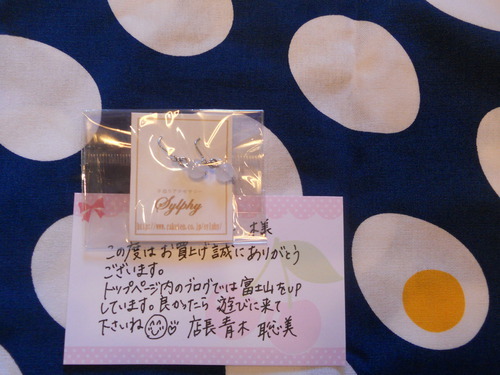 今日は人間ドックに行ってきました今までは市の検診で済ませていましたが、とうちゃんからの勧めもあり、去年からドックに行くことにしました40歳手前だし、やっぱりそれなりの検診は必要かと、、かわいいチビたちのためにも、早期発見はなにより大切ですからねっ!皆さんも、是非、検診を受けてくださいね~さて。今日、ポストを覗いたら、メール便でかわいいピアスが届いていました大好き、かまわぬなんとこれ、送料込みで100円というビックリプライス金属アレルギー対応サージカルステンレスフック★激安天然石ピアス【送料無料】お試し天然石100...価格:100円(税込、送料込)手書きの手紙までつけてくれて、ちょっと嬉しくなっちゃいますよね~主婦には嬉しい素敵なお店を見つけちゃいました**皆様のおかげで、最近ランキングがあがってきました。ありがとうございます♪**にほんブログ村にほんブログ村