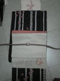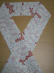 着物で印象をかえるアイテムとして、半襟は低価で、便利ですね。顔に近く、目立ちます。季節の柄で、一味違う印象を残したい着付けでは、衿がうまく決まらない反省点もあり、楽しく衿をマスターしたいが為にあえて、半襟に凝り、衿出し、決めにこだわる事にしました。「脱白衿宣言!」「はんなり・チャレンジ」私のこの春のテーマです。YオークションでGET★ 正絹半襟・桜(¥1000)手刺繍¥1800って安くない? ↓ (クリックでお店にGO)一押しの半襟 和キッシュ 店です。おなじみ べたこ半襟 をまとめて、購入しました。綿ですが、刺繍の見事さは、超感動 \(^o^)/お値段も劇安です。こんな値段でこの刺繍・私頼まれても出来ないわ!←頼んでくる人もいなんでしょうお勧めは、べたこ半襟の月シリーズ です。今回はポーチも購入しました。前回は、ひいらぎの半襟と梅2月の半襟。2回目のお店利用なので、安心感はアップ。スムーズで丁寧な対応で、安心してお買い物出来ました。かなりの人気で、在庫なしもありますが、新作もはいり、要チェック、店の1つです。半襟にあきたら、和小物づくりの材料布として、活躍させたい、刺繍布として考えています。この柄もっていますというお方、お名乗り下さい柄合わせの参考にしたく…宜しくお願い致します。これから以降の、着物姿に登場させますので、時折チェックして見て下さいね楽しみだわぁ(^^♪襦袢につけよぅ。。ワクワク♪ 楽天オークションでGET★ 里奈用に落札した 新品未使用洗える半幅帯です。¥1000初詣に娘里奈に結んだ、白桜京袋帯は、半幅仕様にしたため、見事に縦に線が!可愛い系の半幅欲しかった所にチャンスでした。