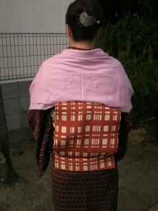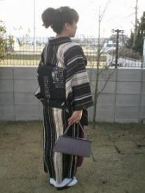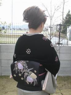 ブログ3ヶ月目にして、やっと、トップページを変えてみました。なんども、デザイン設定やりなおし、とりあえずですが・・・着物日記も50日の記入になり、いまさらですが、もっと分類しておけばよかったと反省しています。テンプレートを使って簡単とかいてありますが、私には、難しいです。色んな機能もあるようですが、まぁ・・・おいおい。チャレンジしていきます。今日は、着付け(和服を楽しむ会)でした。着て行ったのは、ポリの雪輪・白桜京袋帯です。首元が暖かいラビットショール雪輪柄の黒地は、2月上旬までですが、桜牡丹とはいっているので、春も着れるとか…でも春は、もっと明るい色地の着物着たいです。ピンクとか…リサイクル忠衛門店で4点セット購入して、里奈と兼用しています。残り24点の内、3点ピックアップフリーサイズ 【1】フリーサイズ 【2】フリーサイズ 【3】他のも見てみます? ↓ 京袋帯の練習この帯は長過ぎて締めにくかったです。まぁ。¥3300だもんね。文句は言うまい。←単に下手講義あり。φ(..)メモメモ着物と帯の調和について1、色の調和 色の濃淡を揃える。淡いどうし→上品 補色どうし→個性的・モダン2、柄の調和 古典系・モダン系。系を揃える。 3、材質・素材の調和 織りの着物に染の帯。> 染の着物に織りの帯。4、格の調和 ≪≫をあてはめてみましょう。 振袖・≪1≫≪2≫ ≪1≫・丸帯 留袖・≪1≫≪2≫ ≪2≫・袋帯 訪問着・≪3≫≪5≫ ≪3≫・お洒落袋帯(格調高い帯) 付け下げ・≪3≫≪5≫ ≪4≫・お洒落袋帯(趣味的な柄) 色無地・≪3≫≪5≫ ≪5≫・名古屋・袋名古屋帯(格調高い帯)小紋・お召し・≪3≫≪4≫≪6≫ ≪6≫・名古屋・袋名古屋帯(趣味的な柄) 紬類・≪4≫≪6≫ ≪7≫・単帯 ウール・≪6≫≪8≫ ≪8≫・半巾帯 ゆかた・≪7≫≪8≫終了後はいつもの。( ^^) _旦~~お疲れ様でした^^