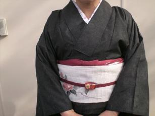 着物で御寿司屋さんへ行きました。1番着物が似合う食事処ですね。正絹紬着物です。しなやかな手触りの墨黒の平糸で織り上げた紬織り生地で全体の家紋柄を青ネズの縦横餅で淡彩に織った品です。素朴感と無地感で、どんな帯にでも合わせられる万能着物です。リサイクル店で購入しました。かないや店です。かなり人気で、着物・帯と毎日ジャンルごとに新着更新して、すぐに予約済みになります。写真のアップが1点に4つ。詳しく、画像綺麗にみえ、チャックしやすく、良心的です。かないや店です。http://www.kanaiya.co.jp/コーデネート作品集も見ごたえあります。(正統派コーデです)椿柄京袋帯でリバーシブルになっていて、裏は茶の極細横柄です。袋帯のポイント柄は、1番苦手ですが、柄出しは決まりました(^^)v帯揚げ・帯締め・八掛けは臙脂で統一。帯揚げの紐が1部でていました。死角で気付けませんでした。鏡に映して、確認が大事ですねぇ~反省御寿司屋さんへ岡山中央町20ビル1階【ゑびす屋】店です。岡山で1番美味しいです。¥も若干お高目ですが、納得出来ます。「へい!トロお待ちぃ!」「」