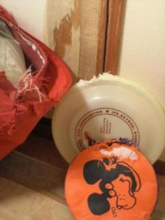 ルークの壊したおもちゃです。なんでも、口にいれて、噛みます。1日2食(150)にしたから、お腹すいているのかしら?新品も、3分でコレ です。ディスクドッグ競技の中に、フリスビー破壊競争っていうのを、加えて欲しいです。間違いなく、上位をねらえるでしょう!?フリスビーは、薬は使えないし・・・ルーク 「もう、しないから、だ~ぢ~で~ワン」 ぶっちゃいくな、顔でしょう?仮釈放しました。芝の隙間に、早咲きクロッカスが芽吹いています。わかりますか?ルークの来る前は、一面、お花でした。全部抜いて、捨てたはずなのに・・・小さいので、見逃していたのでしょうか?意外なお客様です。ルークに食べられる前に、移設してあげましょう♪