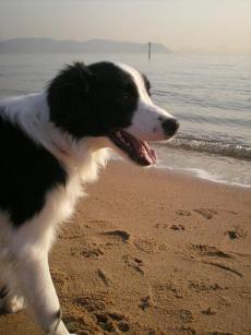 岡山で、1番人気の海水浴場です。日本の渚・百選に選ばれた水質のよい海水浴場で、サメ防御網を設置するなど安全面を配慮し、毎年海水浴客で賑わいます。シーズンオフの今は、お散歩天国です。みごとな松林は日本の白砂青松100選に選ばれています。渋川海水浴場 に行ってきました。はじめての海の広さに感動水が、無限にあるぞぉ~♪飲んでやるぅ~・・・しょっぱい砂食ってやるぅ~・・・じゃりじゃりするフカフカの砂の絨毯です海の向こうに瀬戸大橋が、うっすら、見えます。わかりますか?岡山は、瀬戸内温暖気候で、晴れの日が多く、四国山脈・中国山脈に囲まれ、台風来ても弱く地震もありません。1級河川が3つあり、断水なしで、水豊富で、綺麗です。ほんに、住み良い所ですよぉ~♪恐る恐る、リードを外してみましたら、最大15メートルぐらいしか、離れません。呼べば、すぐに戻って来る ルークU^ω^U♪潮風の香りを満喫し、寒くなってきたので、夕日を待たず、帰りました。夕日は絶景でしたのに…。紹介出来ずごめんなさいね♪(次回は…)夕日が沈む時に「じゅっ~♪」と言ってしまいますのは、私だけ?