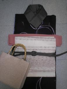 1つの着物に5つのコーデ例和ノンノ店の共同購入の福袋が欲しかったのですが、¥15000でセットは、どうも・・・単品が欲しかったのです。福袋の中の着物とおなじ柄の福袋を発見ました。¥2300・・ヘヘッ安いわ♪おてんば店福袋ね?和ノンノ店の福袋の薔薇柄除いて、同じ着物だったでしょう?着物をお安く¥2300で購入し、自分で和ノンノ店っぽくするしかない!購入したのは、小豆色の輪のリング柄(八掛けは薄紫)和ノンノ店さんは、縞柄の着物には無地かマルモチーフの帯 輪柄の着物には無地か縞モチーフの帯 をよくあわせておられます。マネしちゃおー♪目標はこれ!和ノンノコーデ(いつも、参考にさせて頂いております)【和ノンノ*Style】ふわりと紫水玉の美人な京袋アレンジ5点せれくと 売り切れのコーデ(それだけ人気なのね)甘い着物に縞でピリリと引き締める。( ..)φメモメモ出来たのが、これです。写真1・・・髭紬白帯ですが、横縞になります。半衿&帯締めは、『紅』・手細工 正絹灰味の茶網目柄 ¥2200 で落札似ていますか?まったく同じとは行きませんが、なにげに・・・を目指すのよ!写真2・・・小粋な縞の文様 袋名古屋帯 ピンクベージュ で、¥3200 で落札写真3・・・小粋な縞の文様 袋名古屋帯 ピンクベージュに、桜の半襟、桜足袋、桜帯留め をプラスしてみました。あっ、これいいかも 写真4・・・白の桜刺繍帯に、小花の半襟、帯揚げ&帯締めは大正ロマン花柄で大喜店の小物福袋にはいってあったものです。写真5・・・ピンク無地の帯に、薔薇のレース半襟にばらのトンボ玉かんざし。蝶のビーズがぶらりの帯留めをプラスしてみました。ちなみに、皆様は、どれが好みでしょうか?小物を整理していると、こうやってすぐに脱線してしまい、かたづけているのか?ちらかしているのか?あっという間に時間が過ぎますね・・・最近は、洗える着物が、マイブームです。えっ?着物・・・という好奇の視線も、洗える着物で手軽なのよーとかわします。静電気対策にエレガードふりながら、正絹も、だんだん恋しくなってくるのですが・・・なかなか、辿り着けませんわ^^;