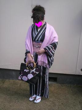 着物で着付け教室へいきました。着ていったのは、いつものベージュではありません(^_^;)やっと。。 ↓ 以前のブログ 同じ着物が、まだ残っていました。洗える着物 黒に小桜尽くし縞模様 です。これは、オークションでゲット品。季節がきましたかね? やっと登場です。この縞のラインが好きな私♪それも桜お縞だなんて…一目惚れですわ。着物…黒に小桜尽くし縞模様帯…正絹ちりめん名古屋帯帯揚げ…正絹青紫帯締め…紺と白のボーダー 帯留め…桜柄の帯留め→ フォーシーズン店 桜のピアスや桜の小物が豊富です。簪…桜1輪。根付…花ストラップCanCamモデルも選んだ愛らしさ♪夢み屋オリジナル S・こでまりストラップ 教室で、白の帯(たてに桜刺繍)帯留め…スワロ帯揚げ…ピンクにチェンジしました。ピンクの帯より、この白の方がこの着物に合っている様な・・・?教材枕を外す為に、半幅にチェンジしました。5月にある友人の結婚式に向け、娘に着付けする練習です。教材枕を利用して、ふくら雀を練習しました。袋帯だって、名古屋帯だって、簡単に帯が結べる!改良枕 説明書付き 着付け教室で使用! ¥2400 ↓ あいづのはいからさん店愛用です。使い過ぎて、ホックが、ゆるくなってきました。立派でしょう?手荒に扱っているからかも…ねっ?これを使えば、帯結びが簡単ですよ! 私のような初心者に、お勧めです。多分ずっと、使いつづけます。だんだん手結び習う気がなくなってきました。だって、着物きておでかけする事で、忙しいですもの…【教材枕を使ってのふくら雀の作り方】セットの仕方後ろの結び方出来上がり。はじめてでした。モデルは、娘です。コツはありますが、けっこう簡単です。さすが、枕仕様。京袋帯で練習しましたが、本番は、振袖用の帯をしめるかも・・・振袖のお仕立て間に合わず、どれにするべきか?着物を今、迷っています。もう1回は、練習しないと、当日あわてそうです。*さくら・SAKURA!*夜桜・枝垂れ桜・八重桜・染井吉野スティックお香 商品番号 S039 価格 480円 (税込504円) 送料別 ↓ 夢み屋店家には、匂いに敏感な ヤツ がいます。桜の香りを選別できるか、ルーク君に試してみようかな?