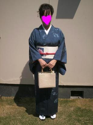 ゴールデンウィークに入りましたね!東日本では、大荒れの様ですが、岡山は、快晴 ♪ でも、突風がふいて驚きましたよ!連休 皆様の予定はどうなっているのかしら~?私は近場をウロウロします。(ショボイ)今日着て行ったのは、はりきって 「牡丹コーデ」 です。正統派コーデ ですね。いつもの、面白いコーデも、好きですが、正統派コーデも落ち着きますわ♪写真前1藍紬に牡丹の洒落袋帯・赤、桃のぼかし帯締め。半襟、帯揚げ、足袋は白で、草履は藍鼻緒です。かんざしは、とんぼ玉に花ぶらり。写真斜め2織りの着物に染の帯といわれますが…。やっぱり、織り着物・織り帯は、かたい感じですわー。ロボットみたい。。。写真帯アップ3どうでしょう?牡丹ぼたんですよねー?大声で、はりきって「牡丹でーす。」と言うと、「これ、椿よ!」と言われました。ガーーーーン皆様、どう思われますか? 牡丹?椿?葉 が、絶対に、椿といわれました。八重椿?さざんか?とも・・・何でしょう? 使用月は、いつでしょう? 皆様教えて下さい。里奈を呼んで、ふくら雀を締めました。帯だけですが、練習の為に、そして、教材枕にセット完了。本番準備を終わりました。今日は、知識編で、お召しと、辻が花の由来と、一般教養のお話がありました。時々、知識編・実技マナー編と、アバウトに登場します。結婚式のマナー編をして欲しかったですわ^^;。忘れている事もありそうなので、夜にもう1度、マナー本を読み返しておかなくちゃ^^;帯を変えてみました。写真、前4写真後ろ5これは、花の種類は?でも、これは、?でいいんです!先輩の帯姿を紹介させて下さい。写真6紅花織り?といわれていたような・・・月に兎柄の帯が、Good★でしょう?写真7帯締め購入しました。 新品¥78000 の値札がついていましたが、¥2980でしたわ♪楽天の、リサイクル忠右衛門店です。→楽天の中で1番好きなお店です!青に見えますが、紫よーん♪