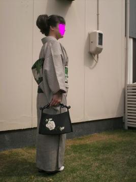 着付け教室に着て行ったのは、40代の薔薇コーデ♪洗える着物、薔薇、格子帯帯揚げは、水色、黄緑、薄ピンクのぼかし。水色の帯締め水牛取っ手の薔薇刺繍アジアンバッグ本翡翠のかんざし薔薇って今が旬ですよねー。春用にアレンジしてみました。写真薔薇斜め1ポイント柄の前を失敗し、前柄が横に来過ぎてしまいました。^^;前の柄は、故意にずらしても、中心から、乳頭までの間にしなければ、いけないと注意されました。写真薔薇後ろ2しわなく、綺麗にできました。やったぁ!後ろは満足です。着付け教室へ行き、白の髭紬帯に変えてみました。帯揚げの練習です。先日、購入したてのオレンジ帯揚げに、チェンジ美保姿のまくらにも、チャレンジしてみました。ホックで、はずれないので、コツがいります。緑地にオレンジの花柄丸くげ帯締に、チャンジ!写真白帯に緑まるくげ3どう?どう?帯揚げは、綺麗でしょう? →でも、かなり時間がかかりました。nade-shikoさん の帯揚げのコツを、熟読しました。また、帯揚げの動画をアップしてくれています。すっごい分かりやすい!指の使い方が、なるほど~また、チャレンジしてみます。いつも、着物で教室に登場しているので、お仲間より、上達がはやいと褒められました。最近、ピンクのやじるしの間が決まって、ぐちゃです。なーぜー?次回はおはしょりを、注意したい!どこかが、決まっても、どこかが、悪い!すべて、よくなるのは、いーつー?今度は、おはしょりのコツを熟読しますわ!皆様、気長に見守って下さいませ♪ふくら雀の練習開始・・・1度先生は見本をみせてくれて、自分でも、やってみました。モデルさんは、70歳のお仲間です。娘と背丈は同じなので、練習台を志願してくれました。有難う御座いまーす。でも、かなり、世にも奇妙な物語(晴れ姿) 粋なおばあちやまです。ダーツの柄の着物の趣向でわかるでしょう?全身前姿は、皆様の心臓を気遣って、控えさせて頂きます。写真ふくら雀4写真前5結婚式参列の娘用ですが、赤い訪問着に赤の袋帯なので、白の絞り帯揚げの薄紫の丸帯締めに、パールのネックレスで、赤の印象をやわらげる工夫をしてみました。もう1つの案は、紫の帯締めに先が3つ(桃、青、黄色)に別れている帯締めを次回の練習で、締めてみます。この2つで、選択します。無事に娘を着付けれるでしょうか?あと12日カウンドダウンです。超不安。練習あるのみ、!ドキドキ!自分の2重太鼓も、練習しとかなくてはー焦ります。写真オレンジ帯締め6帯締めをオレンジに変えてみました。かんざしを珊瑚調パールにかえて、根付を珊瑚で、小物をオレンジで統一です。「オレンジコーデ」かな…♪写真ぞうりと足袋7まだ早いと思いながら、綿レース(2重仕立て)を使用してみたぁ…まぁ、いいいかー