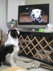 先日テレビで放映されていた「101わんちゃん」を、見ていたボーダーコリー犬のルーク君お友達が出ている! と 必死でくいつき見ています。泣き声に多大な反応この後、大興奮 で、テレビ前の木枠を、破壊液晶テレビ こわされなくて、良かった。ヒヤヒヤもう、犬番組、見せてあげない(ポチタマみたいんですけど・・・)