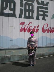 津山桜お花見の帰り、久世ICから、左に3キロ向うと…♪西海岸 というお店があります。西日本のチェーン店のようです。むかし・・・着物に興味がなかった頃、15年も前ですが、テレビで特集されていて、来店。アルマーニのスーツが¥3000で(以後大事に着ていましたが、今はサイズが無理★)お驚き喜んで購入しました。その時、大量の着物リサイクルの記憶が・・・15年ぶりに行ってみました。ありましたよー。こんな田舎僻地に・・・西海岸店前で・西海岸の名前は、着物姿にあいませんけど・・・津山桜花見の帰りなので^^;店内写真奥の1列ズラリとハンガー 全部¥2980 ですわ襦袢がうそつきで付いています。鈴柄で赤♪可愛いですねー(正絹でしたよー)胴裏がかびていますし、着物がピンクなので、パス!長襦袢の鈴柄て可愛い、こんど作りたい♪アイディアいただき!江戸遊女柄(木綿)ホホホ。サイズ難。素材としては面白いですわ。で何を???パス!購入写真で、これOK!状態良し、(稀です)袖丈直すだけ、直さなくてもいいかな?おずれお披露目しますわ♪又、縞ですかー?だって好きなんだもの!