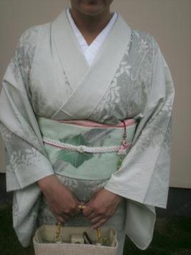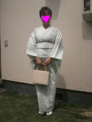 6月に入ってから、初めての単衣です。曇りながら、蒸し暑く・・・着付け時、クーラーをかけながら、着替えました。単衣立ち着物は、正絹紬で、グレーの葉模様で、大好きな柄、縞っぽくなっています。単帯周り帯は、夏すくい織り綴れ袋帯で、薄い芯仕立てです。柔らかいので、締めるのが、難しかったです。帯揚げは、水色の絽のグリーンの蓮模様帯揚げは、手組の水色半襟・長襦袢は、シンプルに絽の白です。すくい織り とは、「すくい」と呼ばれる西陣の織元で使われている専門用語で、つづれ糸よりも細い糸で下絵に基づき経糸を杼ですくうように織り成していくという、大変手間のかかる細やかな織技法で織り込まれた袋帯とか・・・単後ろ姿すくい織りこのうさぎの柄(お太鼓柄)が、大好きで、模様を前と後ろ、ジャスト出すのに、苦労しましたわ~袋帯のポイント柄(お太鼓柄)が、1番苦手です。長いし・・・だからこそ、安く購入できるみたいで・・・単髪ビーズかんざし、2本ざし。 単草履レース網のグリーンの草履に、レースの足袋色をあまりいれず、同一色彩調和だと、近くで見ると、上級者っぽい?ただ、遠目にみると、ぼける感じです。今度は、帯締めだけ、赤とか、濃い色もって来たほうが、よかったかな?と反省着付け教室で、帯だけ変えてみました。八寸名古屋帯のグリーンうさぎ帯単うさぎ帯留め帯留めも、うさぎ3匹。単うさぎ赤締め帯締めを赤に変えてみました。赤がピリリときいて、これまた、いいかも?着付け教室は、室温21℃とクーラーが効いており、快適。珈琲タイムには、以前の結婚式参列の写真を、皆様に披露し、次回の成人式には、変わり結びをする宣言をしてきました。すくい織りピックアップあやめも、いいなぁ~ ↓ あすかや店