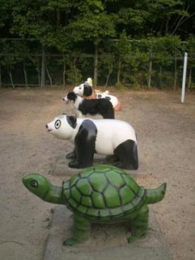 四国が梅雨に入りました。岡山もすぐですわ!近辺の公園を見直そうと、探してまわっています。市内でも、有名な所は、娘(里奈)が幼い頃、連れて遊んで知っていますが、その頃は、免許もなく、ママチャリ公園めぐりでした。今は、車で、ボーダーコリー犬、ルークを連れて、犬のお散歩OKな場所を巡っています。我が家から、1番近い駅。早島駅の近所に、深砂公園発見。深砂公園は、野球場がありますが、見事な砂(海岸の砂の様)さらさらしていました。でも、芝はなく残念。まぁ…せっかくなので、遊んでいくことに・・・こんな、写真を取りました。写真1皆様、どれに乗りたいですか?写真2ボーダコリーは、パンダの様な犬。あっ。丁度、犬とパンダの間に、ルーク君、登場!こんな、アホな撮影をしていると、ブルドッグを連れた、ご婦人が、大笑いしてやって来ました。芝のある公園を探している事を、お話すると、「案内してあげる車でついていらっしゃい」と先導してくれました。それも、ベンツで★セレブな公園に違いない~と期待ふれあいの森公園という所でした。写真、ふれあいの森3深砂公園は、道路沿いで目立っていましたが、ふれあいの森公園の入り口は300メートル、1本道で、しかも、Sカーブ、後に駐車場が見え出しました。お礼を言ってお別れし、先に進んでいくと・・・写真。ふれあいの森4こんな、景色が広がってきました。池の向こうに、白鳥がいるみたい~真っ直ぐにこちらに、向ってきます。「なんて、人(犬)懐っこい白鳥なんでしょう?」素敵なお出迎えです♪写真、ルークと白鳥の対面5ルーク君、初めてみる、水上の生物に???しばらく無言の緊張・・・リードを持つ手に、思わず力が入りましたわ~^^;池の沿いに上に上がっていくと、白鳥もついてきます。今度は白鳥のエサを持参してあげましょう♪でも何あげよう?ドックフードでは駄目かしら?坂を登ると、キャンプ場、と、白いコテージ(ステージ)、ここで、野外コンサートなんてあったら、素敵でしょうに~山の中の森です。田舎とはいえ平地の田畑が多い近辺に、こんな森があったなんて・・・県北にいるみたいです。綺麗に管理されており、でも、人が少ない~絶対穴場だわーとお気に入り公園登録しちゃいました。登録手続きは、ルーク君のマーキングです。やたら、マークングしているのを、最初は、「若い犬なのに、頻尿?」かと思っていました~血液検査で腎臓機能異常なく、いつも、元気にマーキングしております。