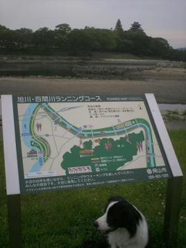 旭川、岡山城付近、(スタート)から百間川までの3キロ百間川から、ゴールまでの8キロですが、まずは、夕方、往復6キロをゆっくりとお散歩しました。スタート地点で撮影。ランニングコース説明図が設置されていました。右上には、岡山城が見えますね途中で、ボーダーコリーのエルちゃん(3歳)と初ご対面です。手前が、ルーク(9ヶ月)。エルちゃんに吠えられ、しょぼくれる、ルークそれでも、途中まで、1キロほど、ご一緒にお散歩しました♪和裁のお友達、 あやねちゃん 、に、触発されて、アップしました。面白いボタン。ボーダーコリーです。右は、ワンポイント刺繍シール です。手芸センタードリームで入手。日よけ用の白長シャツの袖口、部分だけ、付け変える予定です。紫外線が気になる季節。紫外線対策しなくては・・・もう、かなり焼けていますが^^;大きなツバが紫外線をしっかりガード!UVカットつば広帽子【0601nl】帽子は、白(ベージュ)を愛用していますが、黒って蓄熱しそうでも、しっかり紫外線カットしてくれそうで、気になっています。皆様は、紫外線よけは、白派ですか?黒派ですか?ルークいわく、「白・黒どっちも、嫌。毛皮を脱ぎたい」ワン♪と、申しております。確かに、毛だらけで、暑そう~。脱げるものなら、脱げば?コスゲフード&ウォータートレイ4箇所止めるだけで、カンタン水入れの出来上がり☆しかも、深さ調節できちゃうアイデア商品♪コスゲフード&ウォータートレイこれ、いいかも♪