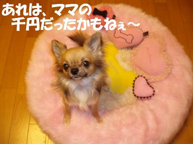 朝、8時半に家を出てお昼まででしたので、さすがに疲れて1時間お昼寝をしちゃいました。今までは、お昼寝して起きたらだけがついていて部屋の中が真っ暗の恐怖の家だった事が多々あったのに少~し日が長くなっていて いつもと同じような時間に起きたけどまだ明かるくて・・・・ささやかな幸せを感じた私ですそして、私の腕枕で気持ちよさそうに寝ていた凛にもビックリ毛布からちゃんと顔だけ出てるの。まるで人間の赤ちゃんに見えました。寝始めた時は・・・凛の頭が奥で、尻尾が私の首のところにあったのにそんな可愛いチワワの凛も3月8日が2歳のお誕生日なので昨日、の屋さんでケーキを注文いたしました。ところがすぐにがあり・・・もう8日は、間に合わないそうです実を言うと(言わなくても薄々バレテル?)浪費しっぱなしだったので(しっぱなし中)送料も入れたらちょっと高いかなぁ~?なんて けちった考えをして悩んでいたので注文が遅れちゃって結局間に合わなくなっちゃいました。とてもがっかりしちゃいました。。。ご存知のお方やすでに購入されたお方も多いと思いますが、ロビナさんというお店です。写真を添付して送ると愛犬に似たケーキを作ってくれるのです。とても可愛いですよね~ 不細工な写真ばかりの中、必死に可愛い写真を探して送ったのに かなり残念でした本日、fifi&romeoのオンラインショップで購入した品物が届きました。ストライプボーンのSのポッテリーが欲しかったのだけどお店でもオンラインショップでも迷ってるうちに(また迷って失敗してます。)買えなかったので今回、ロメオのチャームが残り一個だったので それが欲しいがためにMのポッテリーを買いました。普通逆かしらん・・・?やっぱおかしな人かも・・・(でも、10500円以上で送料がタダなので) でも、もう残りだからかなぁ・・?かなり器の中の白い部分にニスみたいのを塗った部分が多すぎてかなりの勢いで相当黄色いですお店で購入したピンクのドットのポッテリーとは、全然違う感じでした。大抵のことは、すぐあきらめるし 元々、全然気にしないタイプなんですけれど私ちょっと・・・・8割以上黄色いので泣いています説明欄に記載されてた『味』とは言い切れないような・・・でも、仕方ないかぁ・・・ でも、許容範囲超えちゃってる・・・うんっ~~~~~~~~~~~~うんっ~~~~~~~~~~~~~ 悲しい の私にだって、毎日いろんなことあるよママ。。。でも、人生悲しいこともあれば当然、嬉しいこともあります実は、郵便局の方がいらして(突然の敬語)昨日の千円 どうやら 私らしい・・・とナント返金してくれたのですでも、自分でも自信ありませ~ん。今でもわかんないのですよねぇ・・・郵便局の方が「状況など考えて、間違えるとしたら○○さんの所しかないと思うので」な~んて言ってくれてニュースで騒ぎになった宝くじの時とは違い(笑)全員が「私の千円ではありません。」と言ったらしいのですが・・・でも、ちょっと私も半信半疑なので一応、受け取りを拒否したのですが・・・。結果的にいただいちゃいました私いつもぼっーとしていたり、お喋りしすぎでけっこう普段から お釣りもらったっけ?とかよくあるしもしかしたら私だったかも・・?とは、昨日少し思ってたんですが でも、証拠がないので辞退したのですが・・・。本当に少しちゃんとしなければいけないなぁ~と痛感いたしました。もしかしたら私のお財布から旅してって帰ってきた千円かもしれないしもしかしたら誰かのお財布から縁あって飛び込んできたかもしれないこの千円。使い道は、どうしたらよいのでしょうか?たった千円なのかもしれないけれど・・・とても貴重な千円。なんとな~く、ものすごーく考えさせれる千円なのでした。・・・っていうか 少し、お金の使い道考えなさい!と神様の忠告かもしれません。16日以降は、そうしま~す(決して今日から・・とは言わない 懲りないおばはんなのデシタ) 今日も応援宜しくお願いいたしま~す