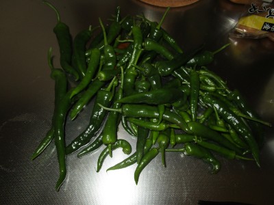おはようございます。朝早くから雨が降っていたがようやく上がりましたね。昨日は清水森なんばを収穫しましたね。これで全部ですね。もちろんこれを焼いて食べましたが、辛みがありましたね。更に葉を取り・・・葉唐辛子を作りましたね。冷やして瓶につめましたね。昨年とっていた、さもだし(ならたけ)とあえて見ましたね。昨夜はつつましく鯖の味噌煮を作りましたがねぎを取るのを忘れて入れなかったが気が付いて梅干を入れましたがその梅が美味しかったですね。今日も午後からの仕事ですね、それまでマッタリと過ごしますね。