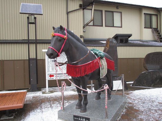 お早うございます。朝の雪片付けがなくなったので無理をして朝に起きないようにしているが、まだ身体がなれないですね。今朝も2時頃に目が覚めて時計を確認している更に3時4時と目が覚めていたがその時には雨の音がしてかなり雪が溶けているのかなと思って居て眠ってしまい6時起床でした。今日の予定は昨日に市役所に行って来たが医療の金額が少ないので補助には当たらないと言われたそこでかみさんの病院にかかったのを入れても良いかと聞いたらOKと言われたので帰ってきましたねかみさんの医療にかかった領主うをを出していただいて計算をして合計を出しましたね。これで市・県民税の申告が出来ますね。来年からはしっかりと計算に入れますね。平泉の藤原秀衡公が源義経に与えた馬の銅像ですね、太夫黒と言う名前のようですね。源義経と一緒に働いてくれたお馬さんですね。一関千厩駅の写真も撮っていたがこのときも雪が少し舞っていましたね。今日も元気に動ける事に感謝をして行動します。帰ってきたら家の前の雪が少し残っているので柔らかくなっていたら処理をしますね。その後は勿論マッタリと過ごします。