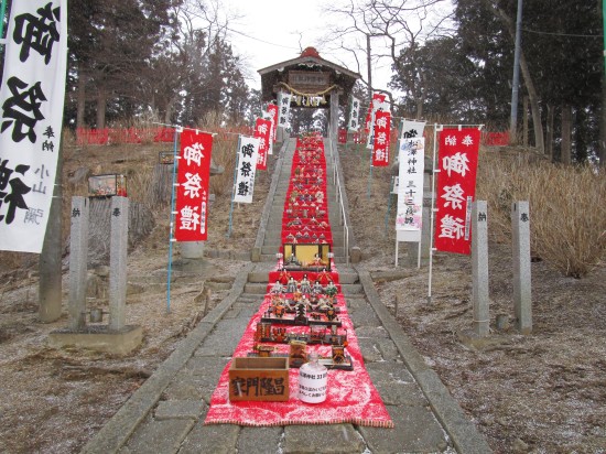 終了とかいたが階段におひな様が置かれて皆さんを待っている写真があったのを思い出しました。