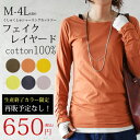カラー限定でセール中~●メール便で送料無料●カットソー トップス 長袖 ロンT tシャツ ロング丈 レディース ロンティー 無地 ロングtシャツ 長袖tシャツ フェイクレイヤードくしゅくしゅシャーリングカットソー 秋冬 【M】【L】【LL】【3L】【4L】【メール便で送料無料】【メール便5】