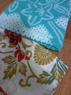 写真は有松絞り祭で買った有松絞りと手ぬぐい。