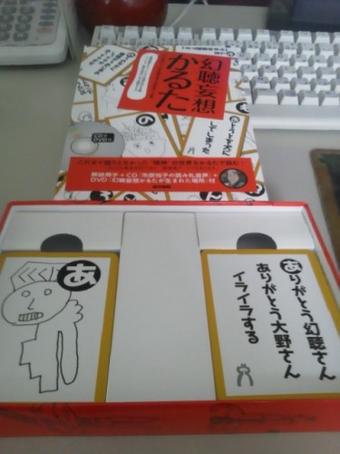 先ほど、呼吸が止まったとの連絡。起きました。ご家族がいらっしゃるまで起きてます。というかもう4時か。昨日外来にいらっしゃった若年性認知症を患う方のご家族。最近のご様子について教えてお話をいただきました。いままで聞いた事のない金属音のような音。軽石を歯でかじっていた音。すいません。僕も聞いた事がありませんでした。頑張りすぎる家族。どうか倒れないようにと願うだけでした。 ADLーcog,BPSーcog 評価しやすいです。これは使えそう。うーん コーヒー飲もう。写真はこの前の学会で購入した「幻聴妄想かるた」。シュールだわ。