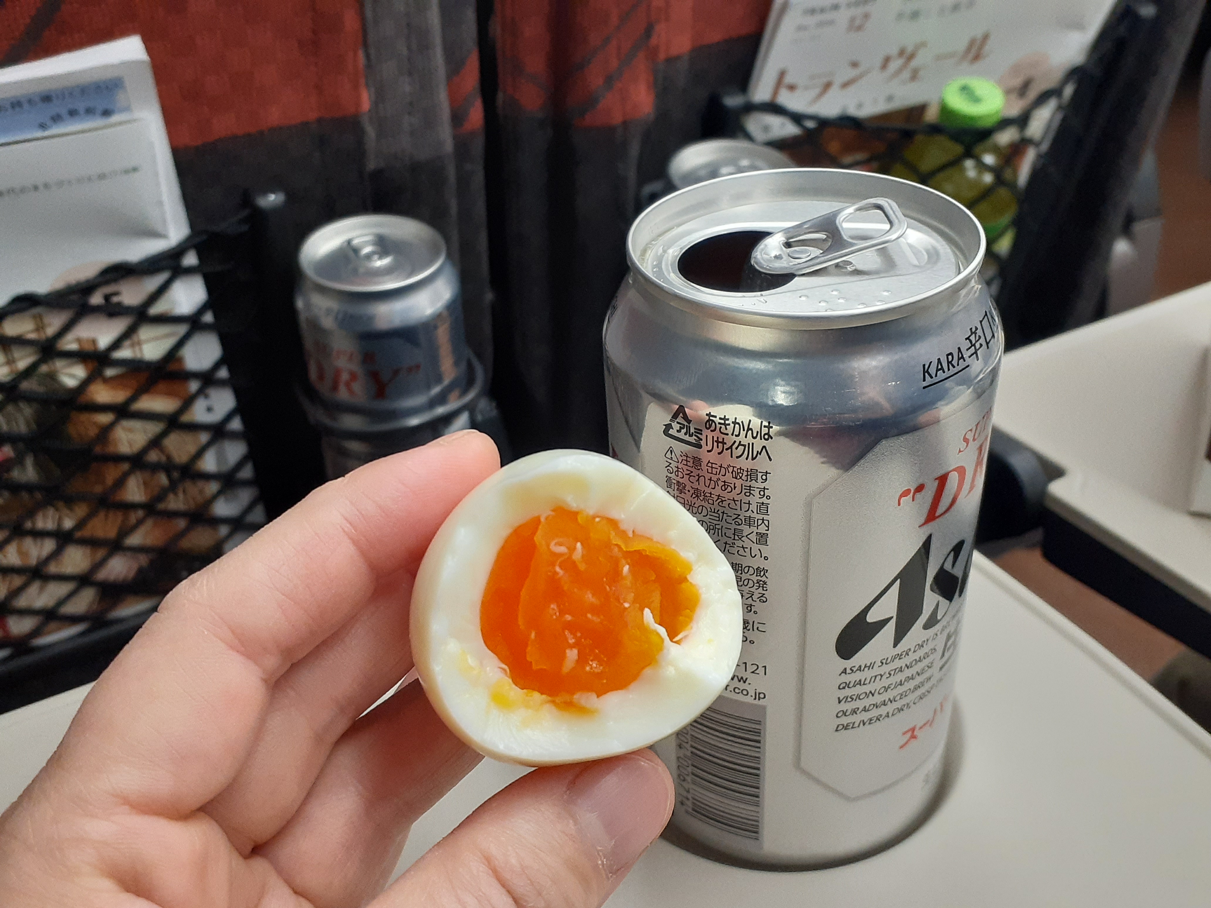1泊2日だからのんびり旅行ではないけど、朝からビールとゆで卵。ヒャッホー!