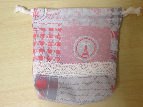 ランドセルに入れる為の、予備のマスクを入れる袋とマスクを作った(*^^*)初巾着w表側だけレースつけてみた(*´艸`)