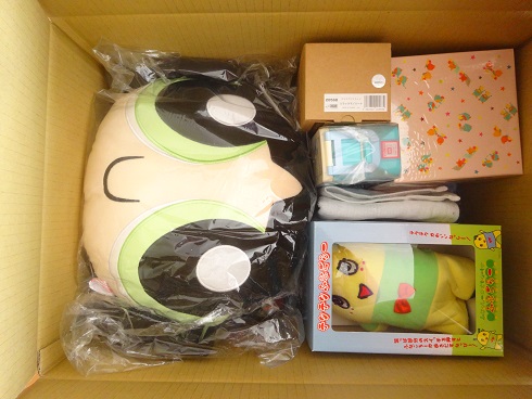10/14 注文10/20 発送10/21 到着今回で2回目のラフBOX。箱を受け取った瞬間、「重!!」ってなってビックリしました。前回はわりと軽かったので(^^ゞで、開けたらドーン!とパワーパフガールズのフェイスクッション…ドーン!!!!\(^o^)/オワタ となりなりましたorz◇雑貨◇パワーパフガールズ フェイスクッション 2,200円アナと雪の女王 ウォールクロック 2,000円アナと雪の女王 スリム2段ランチBOX 1,580円くまのぷーさん ハンドタオル ?リラックマ ガラスアロマライト 2,500円ワンピース シリコン×セラミックタンブラー 1,000?テクテクふなごろー 2,800円ルルロロ キーメット 500円ルルロロ ペーパー2段引き出しBOX 880円くまのがっこう ネックストラップ 1,000円くまのがっこう シール付きBOX(きしゅくしゃ) 800円スーパーマン コンビセット 850円妖怪ウォッチ メガネケース 1,280円?妖怪ウォッチ ミニ缶ケース 176円四丁目モータース イヤホンジャック 800円カードホルダー 700円なめこメタル4 140円スージーズー ショルダーストラップ 1,280円おすましプーちゃん ダイカットメラミンプレート 425円LINE 缶バッジモンスターハンター クリアファイル◇文房具◇チョコレート型セロハンテープ 420円チョコレート型替え芯 250円チョコレート型クリップ 120円ノック式なまえペン 250円LINE フリーケース 96円細軸鉛筆×3 60円ラメ入りカラーペン 120円スティックのり 180円てんとうむしミニはさみ 450円デコテープ 250円シール プーさん 280円シール ROZEFANFAN 220円下敷き 250円方眼ノート 180円ばんそうこう 250円封筒レター 200円重かったのはアロマライトとタンブラーとふなごろーのおかげだったみたいですwアナ雪のランチBOXは8月くらいにタイムセールやってて、悩んだけど買わなかったヤツなので買わなくて良かった~と思ったんですがくまのがっこうのネックストラップとスージーズーのショルダーストラップは9月のセールでまんまと買ってたのでかぶってしまってしまいましたorz上が今回の 下がセールで買ったヤツ注意書きに書いてあるので仕方ないな~とは思うんですが、今回は売れ残りっぽいのも多かったので個人的にハズレだったかな?という感じでした。壁掛け時計、丁度欲しかったので早速使ってます。しかし結構、針の音がうるさい…w次回はもっと楽しめる内容を期待します…(*^^*)ところで同じ日のもっと早い時間に注文したほうの福袋がまだ発送されてないんだが何故…w8種類福袋頼んだので開けるのが楽しみ…wだが1番の楽しみのラフBOXがハズレだったので期待しないほうがいいのだろうか…