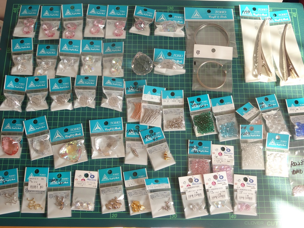 #3200・10粒 ボタン型 ライトローズ 310 円#6704・20mm 雪の結晶 クリスタルAB 340 円#8721・38mm ティアドロップ~ブルーAB 480 円#4120・18mm ファンシー ムーンライト 260 円#4884・11mm 2個 専用石座 ゴールドメッキ 80 円 ×2#5714・8mm 6粒 星型ビーズ ゴールデンシャドー 320 円#4884・14mm 1個 専用石座 ゴールドメッキ 110 円 ×2#6722・30mm 月~Moon~ クリスタルAB 500 円#4884・11mm 2粒 ホワイトオパール 250 円#4884・11mm 2粒 ローズウォーターOP 250 円#4884・14mm アンティークピンク 250 円#5000・8mm 5粒 クリスタルAB2X 290 円#6428・8mm 8粒 ディスク型 ローズピーチ 200 円#6228・10mm 4粒 ハート型 クリスタルAB 230 円#6228・10mm 4粒 ハート型 ローズピーチ 220 円#6228・28mm ハート型(大) ルミナスグリーン 460 円#5754・8mm 4粒 蝶 パラダイスシャイン 240 円#5754・8mm 4粒 蝶 ブラッシュローズ 240 円#5754・8mm 4粒 蝶 ライトターコイズ 240 円#5754・8mm 4粒 蝶 アメジストブレンド 240 円#5754・8mm 4粒 蝶 エアブルーオパール 240 円#5754・8mm 4粒 蝶 シルバーシェイド 240 円#5754・8mm 4粒 蝶 ジョンキル 240 円#5754・8mm 4粒 蝶 デニムブルー 240 円#5754・8mm 4粒 蝶 バイオレット 240 円#5754・8mm 4粒 蝶 フィッシャー 240 円#5754・8mm 4粒 蝶 ライトローズ 240 円#5754・8mm 4粒 蝶 ローズピーチ 240 円#6010・13mm 2粒 ムーンライト 360 円#6128・8mm 8粒ミニペア クリスタルAB 250 円#5810・8mm 20粒 ロザリン 290 円8,770円#8816 クレセント MDサファイヤ 30MM 1粒 360 円 #8781 ハート 28MM MDサファイヤブルーAB 380 円 ×2#8116 クリスタルブルーAB 14MM 10粒 500 円 ×2#8115 14mm ロサリン 10粒 500 円 #8115 クリスタルブルーAB 14MM 10粒 500 円 ×2#8721 クリスタル 50×29MM 1粒 660 円#8721 クリスタルブルーAB 38×22MM 1粒 460 円 ×2#8721 38×22MM ミディアムサファイア 1粒 400 円 #8816 クレセント クリスタル 20MM 2粒 360 円#8611 40×11 クリスタルブルーAB 240 円 ×26,440円またしこたま買ってしまったヽ(;´ω`)ノ普通の店で買うより安い&売ってない品が多くてつい…生地買わなくなった分、スワロにつぎこんでるなぁ…早く届かないかな(*^^*)
