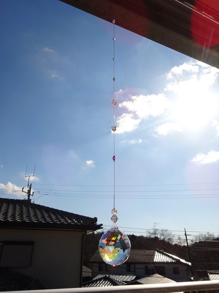 こないだヤフオクで買ったスワロの#8558 ブルーAB 40mmでサンキャッチャーを作ったっす贅沢?にバタフライのビーズも7個つけてみた(*´∀`)ノだけど8mmなのでちっさwこっちは車用か、ストラップくらいの大きさのサンキャッチャー水晶とスワロの7色のビーズで作りました(^^)/