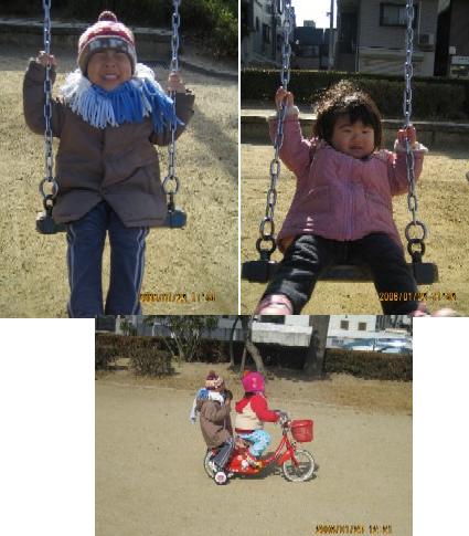 先週公園に行ったときに撮ったものです♪ 雪穂が上手にブランコ乗ってますよ(≧▽≦)