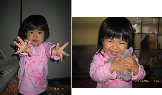 雪穂に何歳か聞いたら、「にちゃい」って答えてくれました☆ ちょっと「さんちゃい」とも聞こえるんだけど(笑)