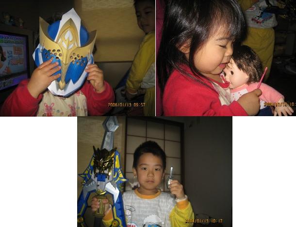 昨日の日記の写真、アップしたので、よかったら覗いてくださいね☆^(o≧▽゚)oニパッここクリック☆⇒「1月28日日記」昨夜は、パパのお迎えが結局深夜1時半頃にw子供たちは12時頃にやっと寝てくれたんだけど帰る時に2人とも起きちゃったヾ(;´▽`A``アセアセすぐに帰宅して、みんなでお布団へ☆きっとすぐに寝てくれたはず・・・w私は、お弁当の下準備だけしてから、本読んで寝ましたZzz…(*´~`*)。o○ ムニャムニャ今朝は、陸央が早起き!!(ノ; ̄◇ ̄)ノ エエエエェェェェェ-昨日は深夜2時半頃に寝たのに、いつものように7時半に起床!wあんた、かなり寝不足状態じゃない・・・でも陸央は絶対に2度寝しない子なので、仕方ないε-(ーдー)ハァ私もお弁当のために、同じ時間に起きてたのでパンと牛乳を与え、いろいろ準備して歯磨きしてる間に雪穂まで起きちゃったわ(T▽T)アハハ!2人はご機嫌に遊び始めてたから、その間にお弁当作りv( ̄∇ ̄)vま、簡単にレンジでチンするやつなども入れたけどね☆ でもパパがなかなか起きてくれなくて起こすのに大変だったわwなんとか起こして用意させて(笑)、10時半頃にε=ε=ε=ヾ(´▽`*)ノ☆イッテキマース☆ヾ(*´▽`)ノ=з=з=з今日は、と~~~ってもいいお天気で暖かいので大きな公園に行ってきたの・:*:・(*´ー`*人)。・:*:・着いて早速遊ぶ子供たちね☆ローラースライダーもとっても楽しんでたよヾ(@⌒▽⌒@)ノあっちでもこっちでも楽しんで、12時前にお弁当に☆子供たちもいっぱい食べてくれて陸央も「すごい美味しい!」って言ってモリモリ食べたわ(゚-゚*)(。。*)ウンウン嬉しいわね☆でもあっという間になくなったので、またすぐに遊び開始!ブランコでも楽しんだわヾ(〃^∇^)ノわぁい♪ 14時頃になって、もう帰ろうって言うので車へ☆でもパパが眠たくって運転できない・・って事でしばし車の中で就寝w子供たちも軽くおやつ食べたりして、すぐに就寝Zzz…(*´~`*)。o○ ムニャムニャそりゃ、かなりの寝不足だもん、秒殺するわよね(笑)30分ほどパパが寝てから、今度はパパの実家へ☆着くまで私が寝させてもらいました( ̄∀ ̄*)イヒッ着くと、子供たちもよく寝たから起きてご機嫌に♪ジイジとバアバに挨拶して、早速大暴れ~~wで、ちょうど競馬の時間だったのでジイジが真剣に見てて・・・・゚+.(ノ*`・Д・)ノ*.オオォォ☆゚・:*☆勝ったって~~!!ってことで、陸央がおもちゃ勝ってもらえることに( ̄ー ̄☆キラリ私もおむつ買いたかったから、みんなで赤ちゃん本舗へ☆買ってもらったのは、陸央は「リュウケンドー」の銃のおもちゃ。雪穂はアンパンマンのギターねv( ̄∇ ̄)v帰ってすぐに開けて遊び、2人とも嬉しそう~ヾ(@⌒▽⌒@)ノジイジ、どうもありがとう! ゆっくりしてから、18時に晩御飯にv( ̄∇ ̄)vお持ち帰りのお寿司をご馳走してもらいました♪お酒も飲ませてもらって、とっても楽しく美味しくいただいたよ・:*:・(*´ー`*人)。・:*:・あっという間に時間も20時になるので、ヾ(* ̄▽ ̄*)Byeヾ(* ̄▽ ̄*)Byeいつもいつも、ありがとうございます☆また遊びに行きますね☆^(o≧▽゚)oニパッ帰宅してから、すぐにまた4人でお風呂に入っちゃって、今日のリュウケンドーとマジレンジャーのビデオ鑑賞したよ☆リュウケンドーでは、今日買ったおもちゃが出てくるたびに雪穂が「これ、にいにと同じやなぁ」って(笑)すっかり戦隊物にハマってる雪穂なのですw見終わってから22時半頃にパパと子供たちでお布団に。いっぱい遊んだからすぐに寝てくれることでしょう(゚-゚*)(。。*)ウンウン明日からちょっとお天気も下り坂ですねぇ。ま、まだ明日は雨大丈夫だし、気温も高いままのようなので明日のうちにお外遊びしておかないとなぁ(* ̄m ̄)プッまだ遊ぶのか?!ってねぇ(笑)ではでは、今日も一日お疲れ様でした~See☆':.*^ヾ(≧∀≦=ヽ)*.;'☆You