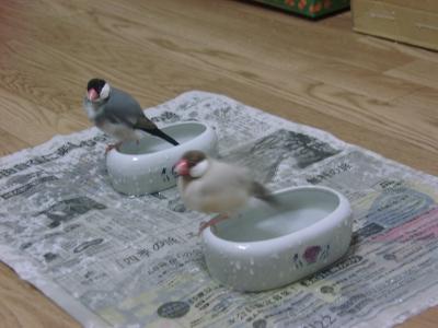 水浴び中の写真を激写!!気持ちよさそうに水浴びしてますっ。。。動く文鳥を撮るのって大変だわ~頑張ってまた色々撮って載せたいと思います。