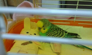 keepが初めて自分でケージから出てきた!今年に入ってからとっても遊びたそうな素振りをしていたので、どうしたら遊べるかなぁと色々やってみた。一昨日、餌入れを手で持って、手前に指…指に飛び乗って食べてくれた!昨日、手のひらにおやつ…これも食べに来てくれた!そして、今日、ケージの外で指を出して「おいで」と言ってみた…飛んで来て乗ってくれた!すぐに帰っちゃったけど、もう一度!嬉しくて涙出た。その後も手のひらからおやつを食べてくれた…keep、これからもゆっくりでいいから仲良くなろうね!あ…遅くなりましたが、あけおめ、ことよろです(^_^;