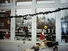 窓には手作りの、可愛らしい絵や飾り付けをするのが、こちら風。