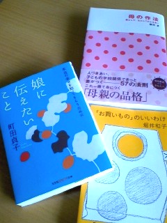 ヒヨと私が数日前から風邪気味です…。ヒヨが先に。次いで私が。早めに病院へ行ったので、お互いに熱はでずにすんでいます。しばらくはお家の中でまったりとした日々になりそうです。秋晴れが続いてるので、お家の中に居るのはもったいないのですが(苦笑)最近この本を再び読み直しています。ピンク色の表紙である「母の作法」。母親としての存在のあり方が書かれています。新米母としてはとーっても勉強になる一冊。これからも、度重ねて読み返していきたい本です。